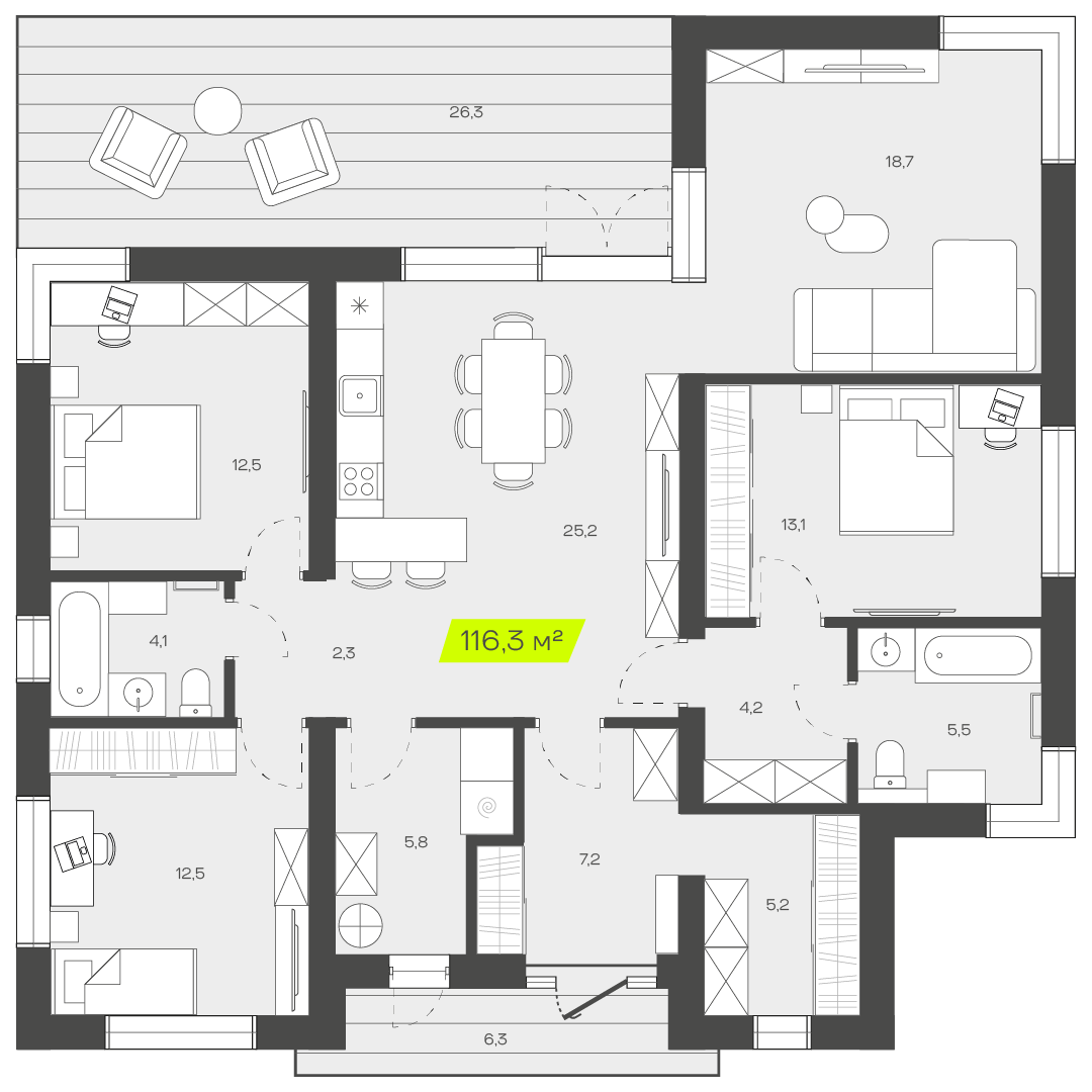116.3 м2