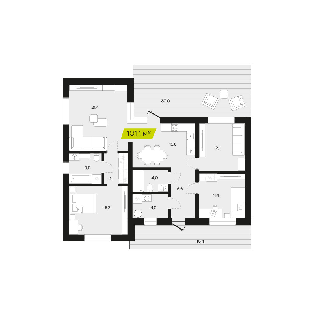 Три спальни обеспечивают достаточное пространство для семьи, позволяя каждому члену иметь собственное место для отдыха и уединения. Это особенно важно для семей с детьми, где каждый ребенок может иметь свою комнату, что способствует развитию независимости и личного пространства