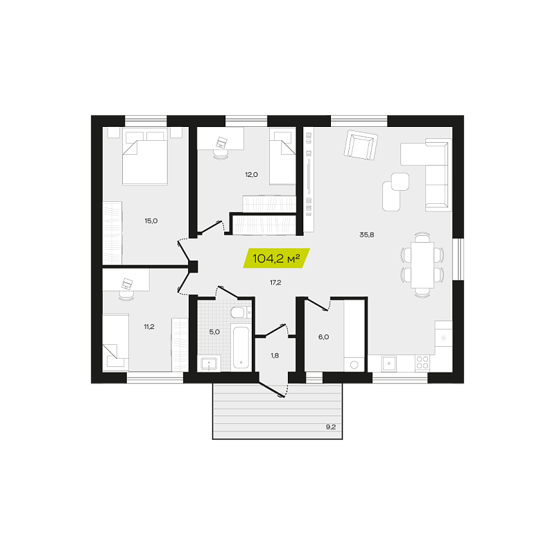 Три спальни обеспечивают достаточное пространство для семьи, позволяя каждому члену иметь собственное место для отдыха и уединения. Это особенно важно для семей с детьми, где каждый ребенок может иметь свою комнату, что способствует развитию независимости и личного пространства