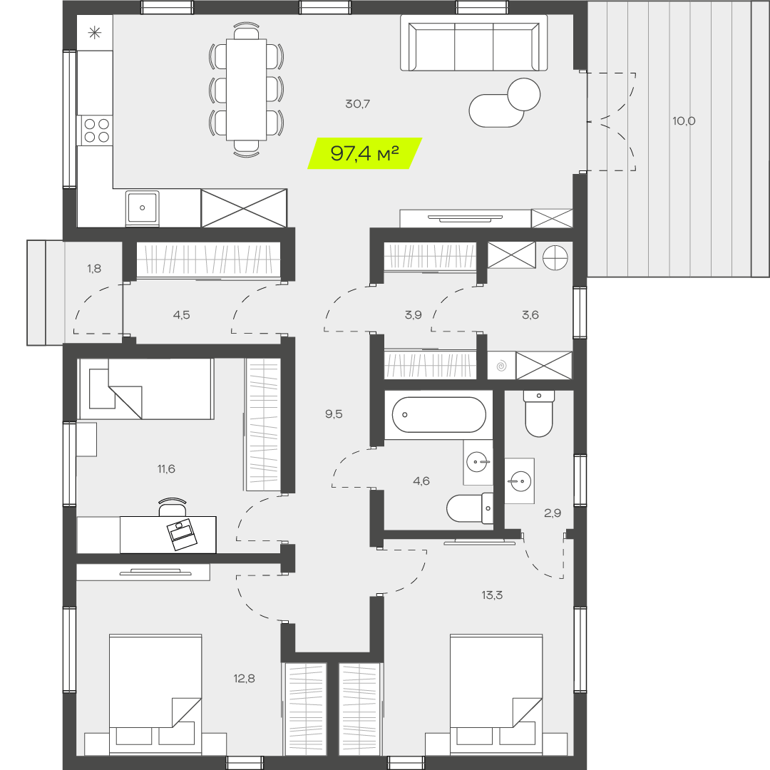 60-23КД класика, 97.2 м2