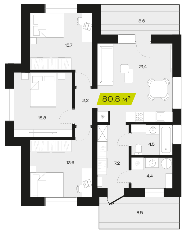 Модерн, 80 м2