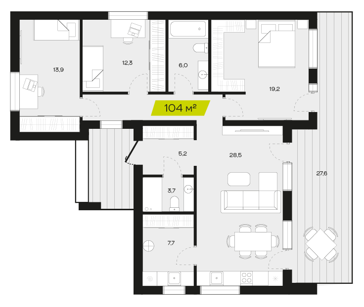 Три спальни обеспечивают достаточное пространство для семьи, позволяя каждому члену иметь собственное место для отдыха и уединения. Это особенно важно для семей с детьми, где каждый ребенок может иметь свою комнату, что способствует развитию независимости и личного пространства