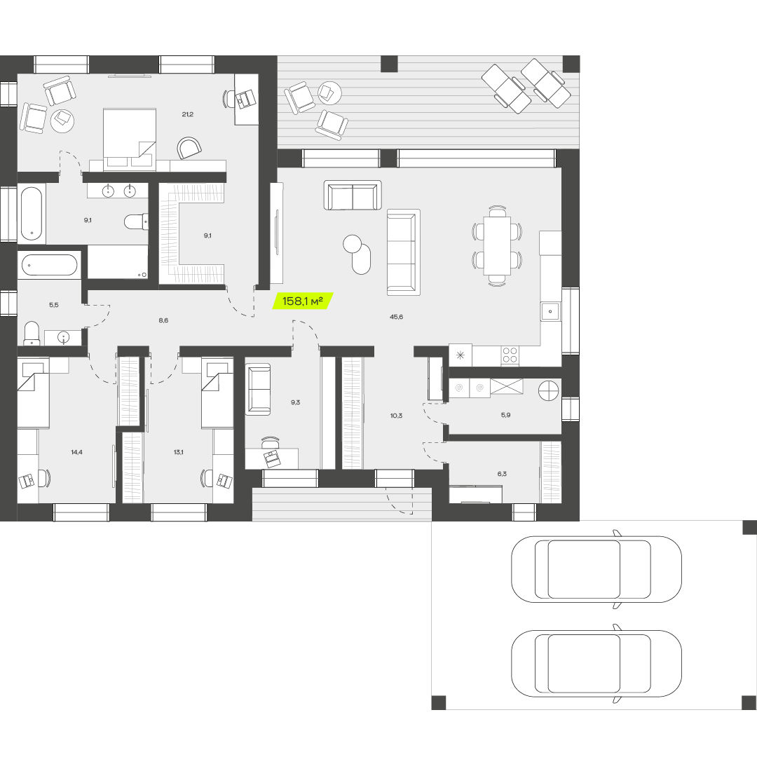 Три спальни обеспечивают достаточное пространство для семьи, позволяя каждому члену иметь собственное место для отдыха и уединения. Это особенно важно для семей с детьми, где каждый ребенок может иметь свою комнату, что способствует развитию независимости и личного пространства