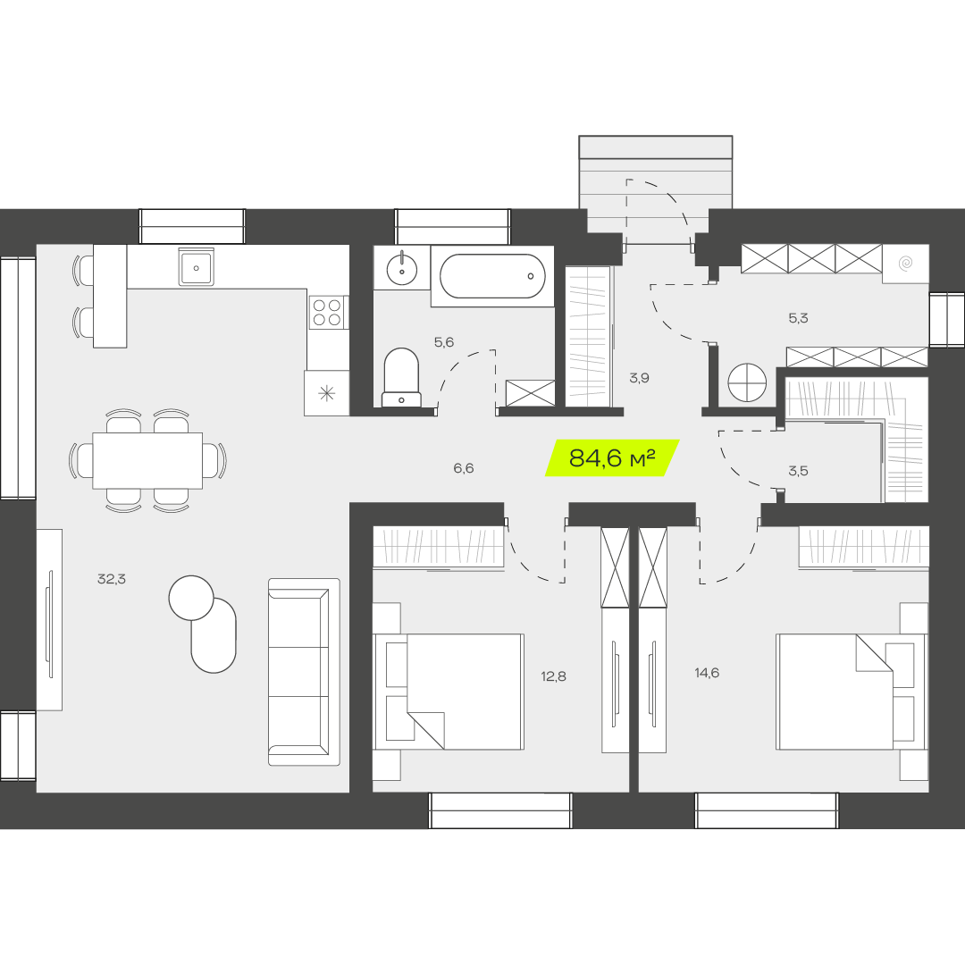Три спальни обеспечивают достаточное пространство для семьи, позволяя каждому члену иметь собственное место для отдыха и уединения. Это особенно важно для семей с детьми, где каждый ребенок может иметь свою комнату, что способствует развитию независимости и личного пространства