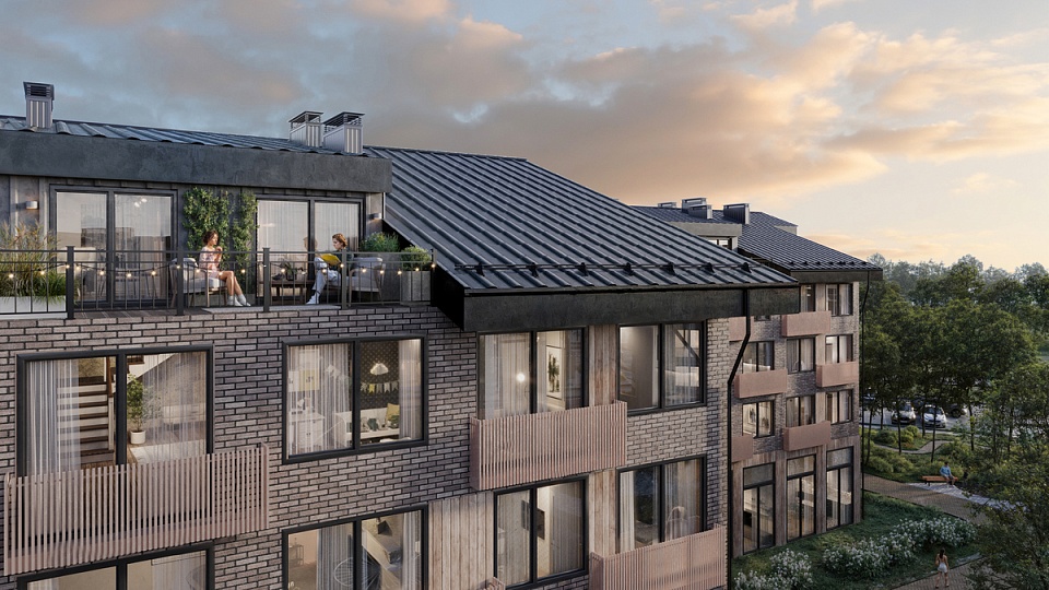 Кирпич от фасада до межкомнатных стен, современная архитектура, широкий выбор уникальных планировок и всего 7 квартир на этаже. Есть варианты с двумя уровнями, собственными террасами и патио. Все квартиры с панорамными окнами, а потолки до 4,5 метров.