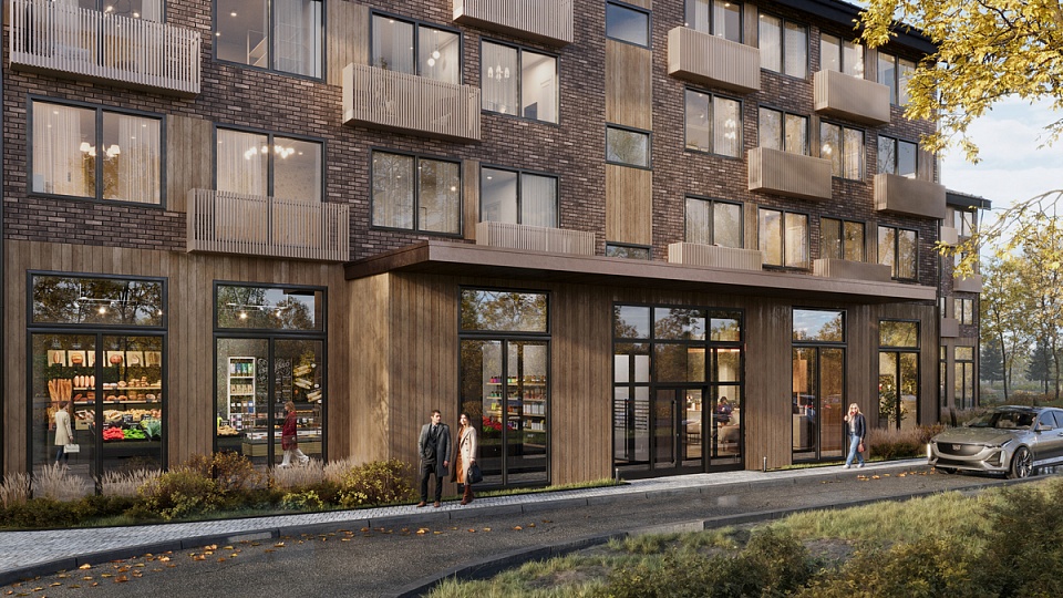 На первом этаже комплекса расположится лобби-зона с комьюнити-центром — уютное пространство для встреч, общения и отдыха жителей. Здесь же откроются кофейня, магазин, коворкинг и детский клуб для занятий и игр.