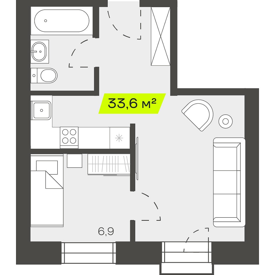 Четырехкомнатная студия, 88,11м 2