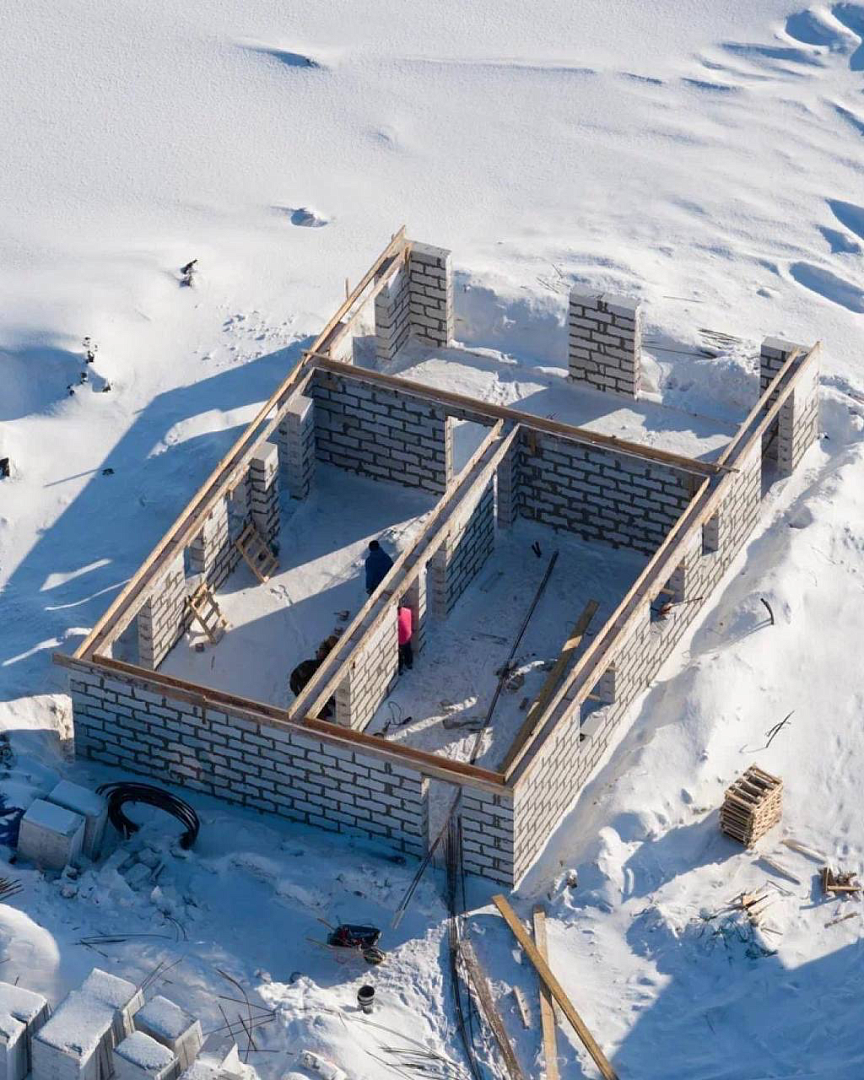 • Участок 34: Завершили кладку стен и залили армопояс.